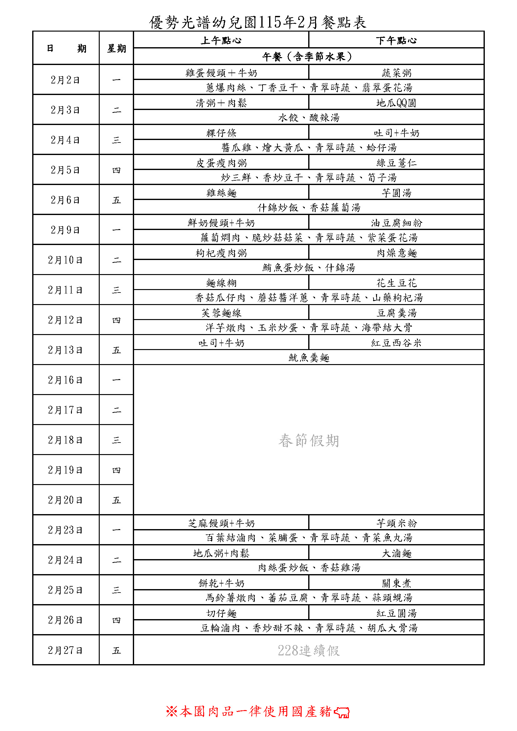 115年2月餐點表